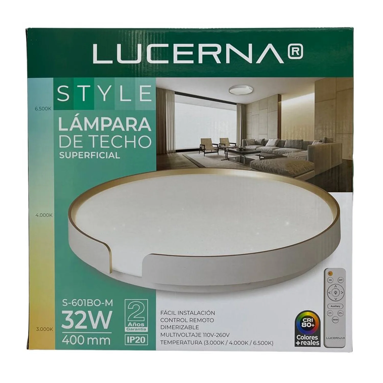 - **Potencia**: 32W, suficiente para iluminar áreas de tamaño medio a grande.