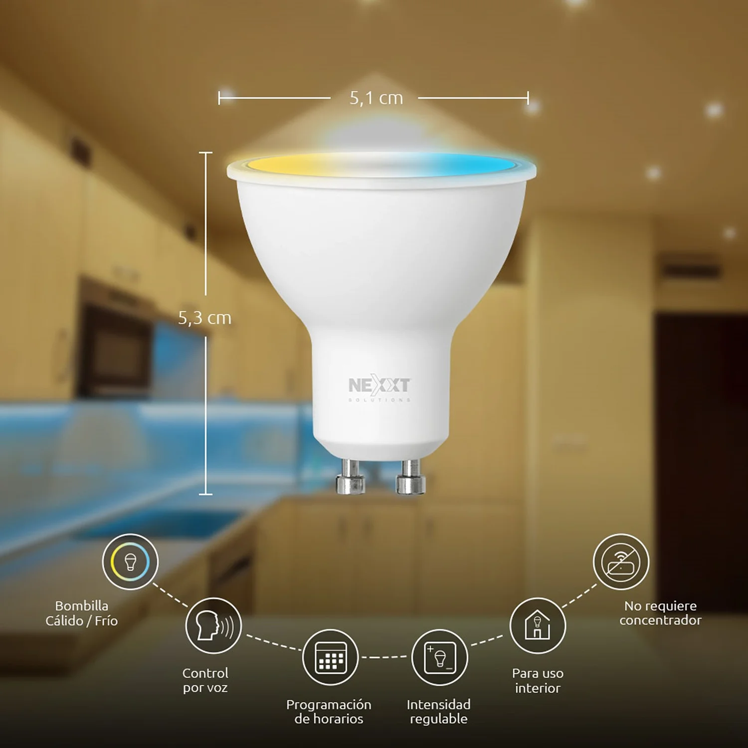 - **Compatibilidad**: diseño GU10 que permite una fácil instalación en cualquier base compatible, sin necesidad de herramientas adicionales.