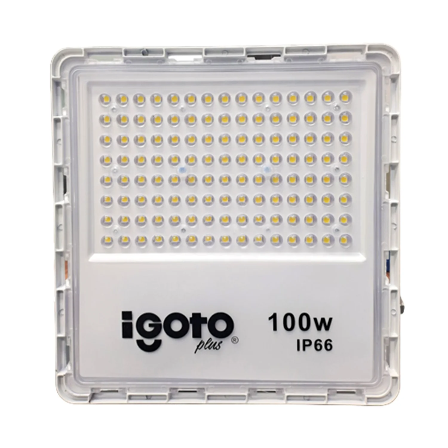El reflector LED cuadrado Igoto IG-RL100W es una solución de iluminación de alta eficiencia, diseñada para proporcionar una iluminación potente y duradera en una variedad de aplicaciones. Con una potencia de 100W y una temperatura de color de 6500K, este reflector es ideal para espacios que requieren una iluminación intensa y clara, como áreas de trabajo, almacenes, estaciones de servicio y exteriores en general. Su diseño robusto y su clasificación IP66 garantizan que el producto sea resistente a las inclemencias del tiempo, permitiendo su instalación en ambientes tanto interiores como exteriores.