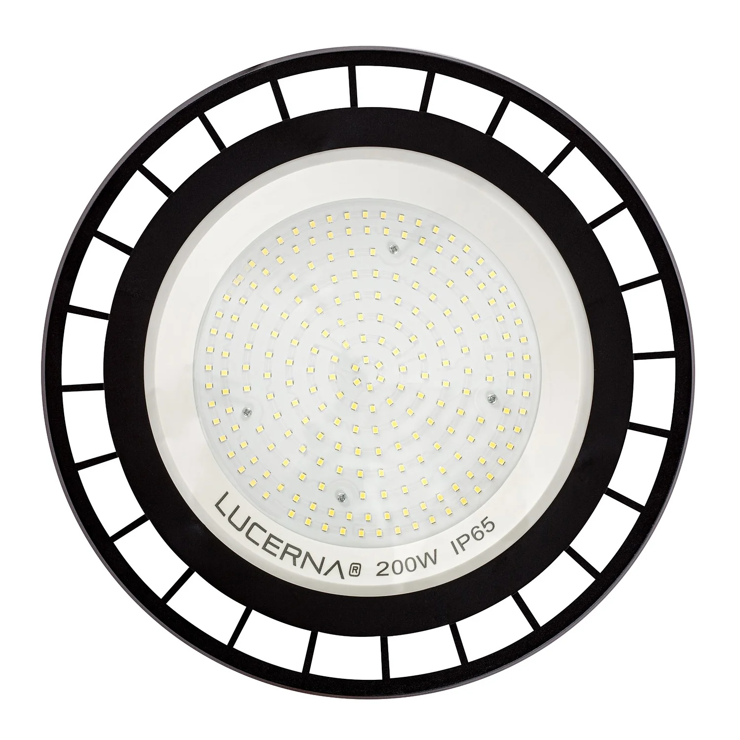 La lámpara UFO 200W está equipada con tecnología LED avanzada que no solo maximiza la eficiencia energética sino que también minimiza el costo de operación a largo plazo. Presenta una temperatura de color de 6500K, que ofrece una luz fría y brillante, ideal para entornos donde se requiere una visibilidad clara y precisa. Además, esta lámpara genera un flujo luminoso de 100 lumens por watt, lo que equivale a una salida total de 20,000 lumens, asegurando un excelente nivel de iluminación.