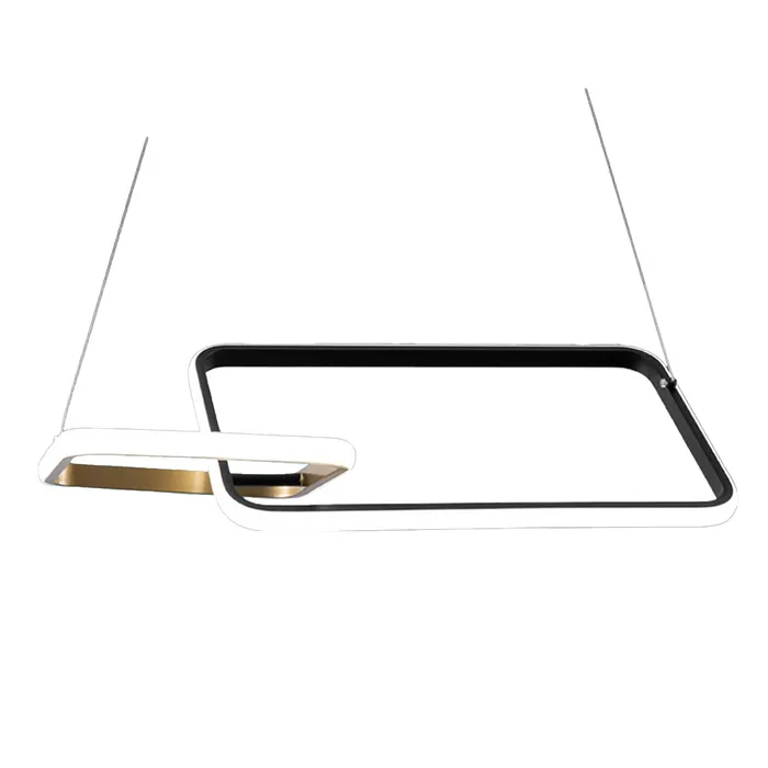El acabado en negro y oro no solo resalta el estilo moderno de la lámpara, sino que también facilita su integración en diferentes esquemas de color y estilos decorativos. Su diseño colgante permite una instalación fácil y rápida, manteniendo el espacio despejado y añade un foco de atención visual.