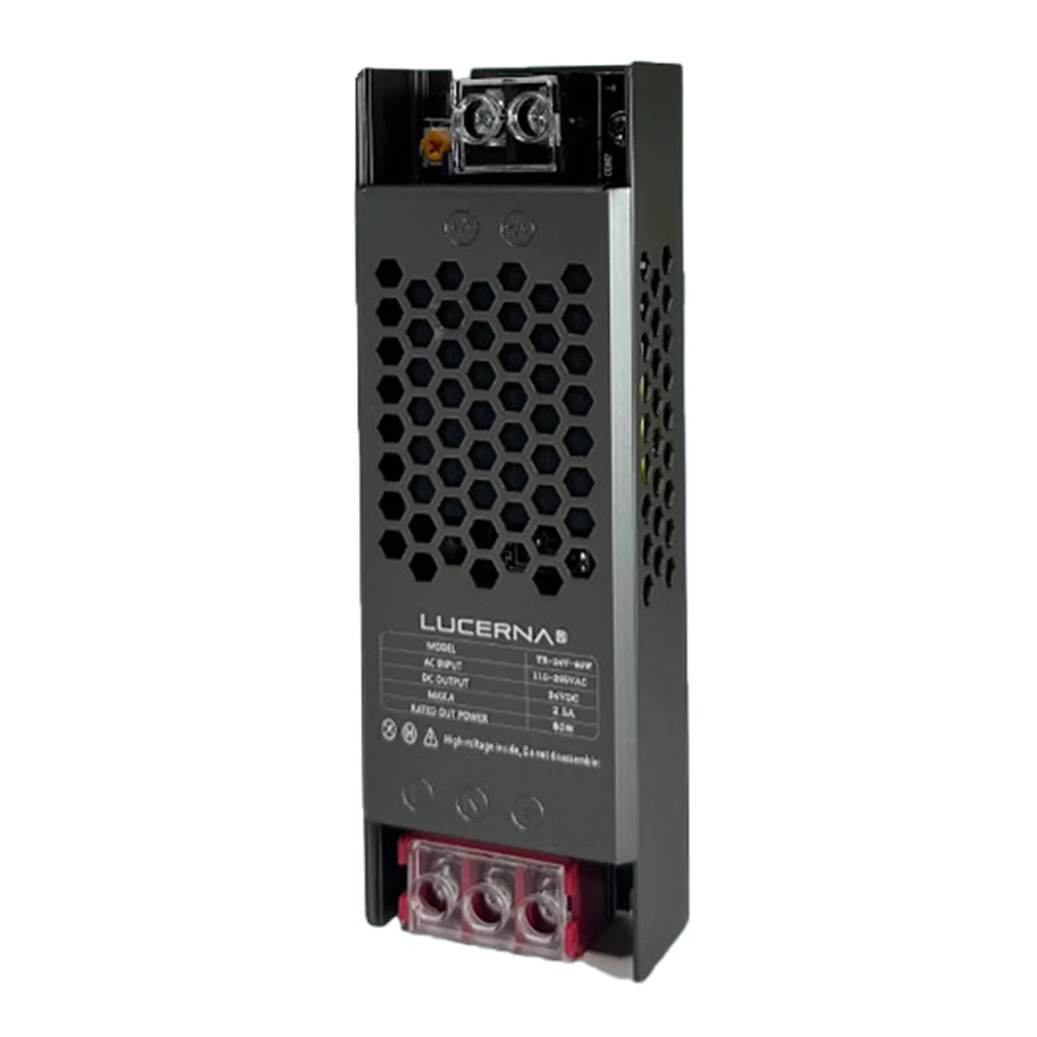 El transformador está equipado con tecnología de última generación que le permite convertir voltajes de entrada de 100-240V AC a una salida segura y regulada de 24V DC. Tiene una potencia máxima de 60W, lo que lo hace adecuado para una variedad de aplicaciones, incluidas instalaciones en interiores y exteriores. Entre sus características destacadas se incluyen: