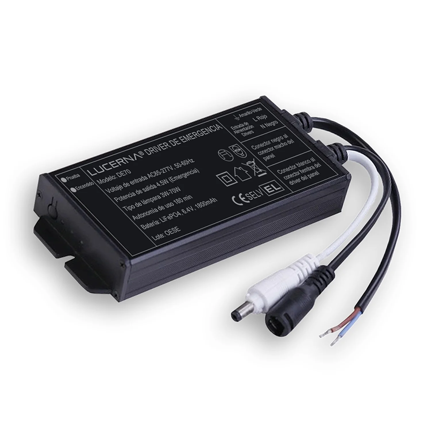 El DRIVER-3W-70W-E es un dispositivo de emergencia diseñado específicamente para ofrecer una solución fiable en situaciones de corte de energía. Este driver permite el funcionamiento de paneles LED de hasta 70W, garantizando la continuidad de la iluminación en entornos críticos. Su diseño compacto y eficiente lo hace ideal para instalaciones en espacios comerciales, industriales y residenciales. Además, cuenta con un sistema de carga inteligente que maximiza la vida útil de la batería y asegura un rendimiento óptimo.