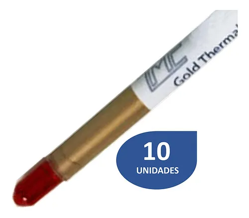 La Pasta Térmica Disipadora Dorada [OTR007-10] es una solución de alto rendimiento diseñada específicamente para maximizar la transferencia de calor entre componentes electrónicos y disipadores térmicos. Cada unidad del paquete incluye 10 jeringas de pasta térmica, garantizando un suministro adecuado para múltiples aplicaciones en el campo de la electrónica y la informática. Esta pasta térmica es ideal para su uso en procesadores, tarjetas gráficas, y cualquier otro dispositivo que requiera una eficiente gestión del calor.