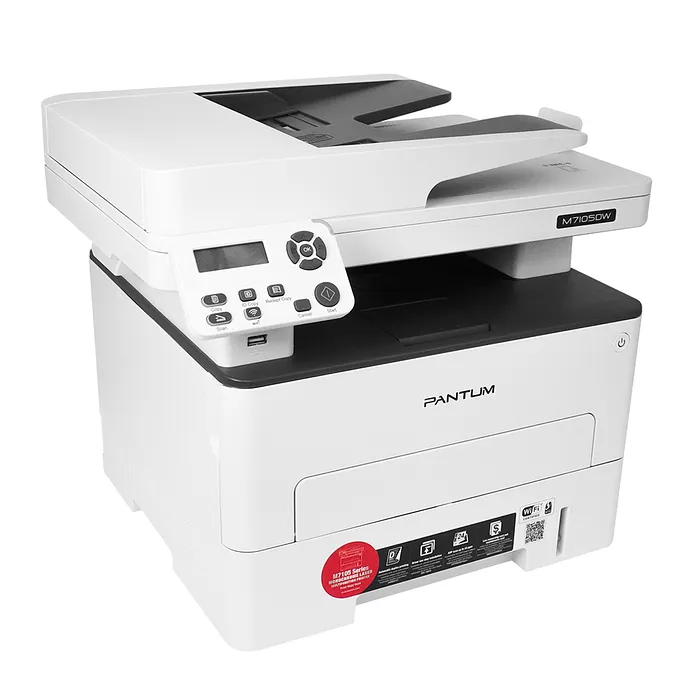 La Pantum M7105DW ofrece múltiples opciones de conectividad, incluyendo USB, Ethernet y Wi-Fi, lo que permite a los usuarios integrarla fácilmente en su red de oficina. La funcionalidad de impresión móvil a través de aplicaciones compatibles proporciona aún más flexibilidad.