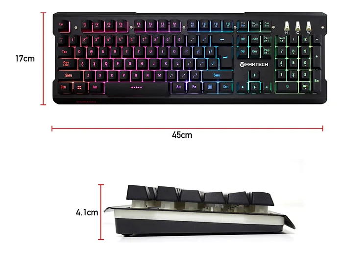El Fantech K612 Soldier presenta retroiluminación RGB personalizable, lo que permite a los usuarios elegir entre una amplia gama de efectos de luz y colores, mejorando así la atmósfera del entorno de juego. Los interruptores mecánicos están diseñados para soportar hasta 50 millones de pulsaciones, garantizando un rendimiento duradero y fiable. Además, su estructura cuenta con un chasis de metal que no solo brinda un acabado estético de alta gama, sino que también añade estabilidad y resistencia.