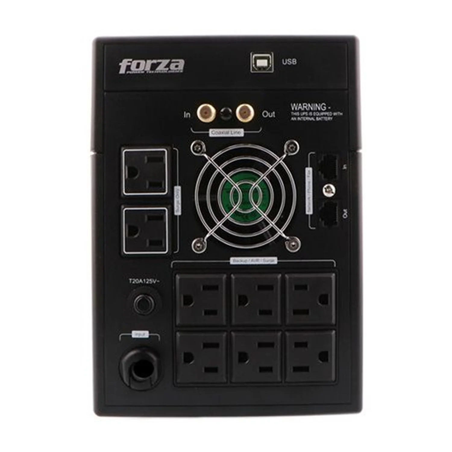 Además, el FX-2200LCD cuenta con ocho salidas NEMA 5-15R, que ofrecen múltiples opciones de conexión para dispositivos. Estas salidas están distribuidas para maximizar la eficiencia del espacio y facilitar la conexión de equipos adicionales. El UPS también incluye puertos USB, lo que permite la conexión directa a computadoras para la gestión del sistema a través de software especializado, permitiendo el monitoreo y control remoto de las condiciones del UPS.