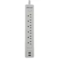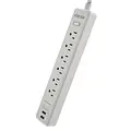 La FSP-612USBW está equipada con seis salidas NEMA 5-15R, lo que permite conectar hasta seis dispositivos simultáneamente. Su diseño compacto y plano facilita la instalación en espacios reducidos, optimizando el uso del área disponible. La regleta cuenta con tecnología de protección contra sobretensiones, que salvaguarda los equipos conectados de picos de voltaje y transitorios eléctricos, prolongando su vida útil y funcionamiento óptimo.