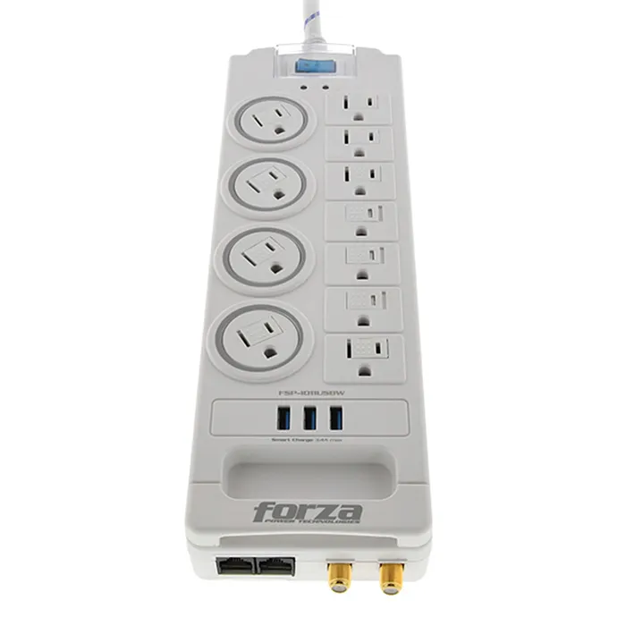 La Regleta Protector de Voltaje Forza FSP-1011USBW es una solución integral diseñada para la protección de dispositivos eléctricos en entornos comerciales y residenciales. Con una capacidad de carga de hasta 1750W, este producto es ideal para usuarios que requieren una alta capacidad de energía y múltiples opciones de conectividad, garantizando la seguridad y eficiencia de sus dispositivos conectados.