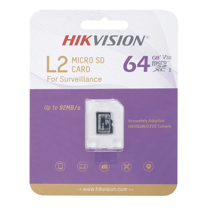 La memoria Micro SDHC Hikvision [HS-TF-L2/64G] es una solución de almacenamiento de alto rendimiento diseñada específicamente para aplicaciones de videovigilancia. Con una capacidad de 64GB, esta memoria ofrece una velocidad de lectura de hasta 92MB/s y está clasificada como Clase 10, lo que garantiza un rendimiento adecuado para la grabación de video en tiempo real y la reproducción de imágenes de alta calidad.