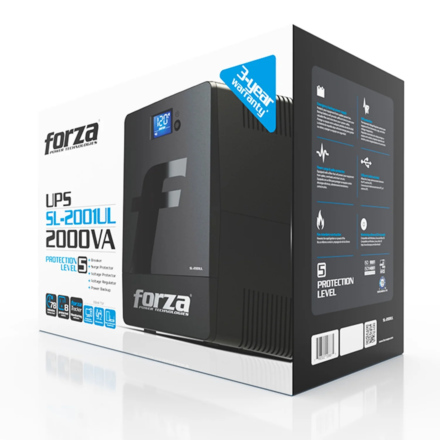 El UPS Interactivo Forza SL-2001UL es una solución de energía ininterrumpida diseñada para proteger equipos críticos de sobrecargas, picos de tensión, y cortes de energía. Con una capacidad de 2000VA y 1200W, este dispositivo es ideal para entornos donde la continuidad eléctrica es esencial, como oficinas, servidores, y sistemas de telecomunicaciones.