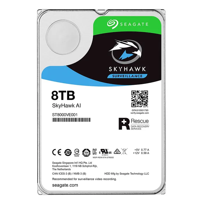 Este disco duro cuenta con una interfaz SATA III, que permite una transferencia de datos eficiente y rápida, garantizando que los flujos de vídeo se manejen sin interrupciones. Su caché de 256 MB mejora la velocidad de acceso a los datos, lo que resulta esencial en entornos de vigilancia donde se requiere un rendimiento constante y fiable. El diseño del Skyhawk AI está optimizado para trabajar en entornos de grabación 24/7, soportando cargas de trabajo pesadas y ofreciendo una alta resistencia y durabilidad.