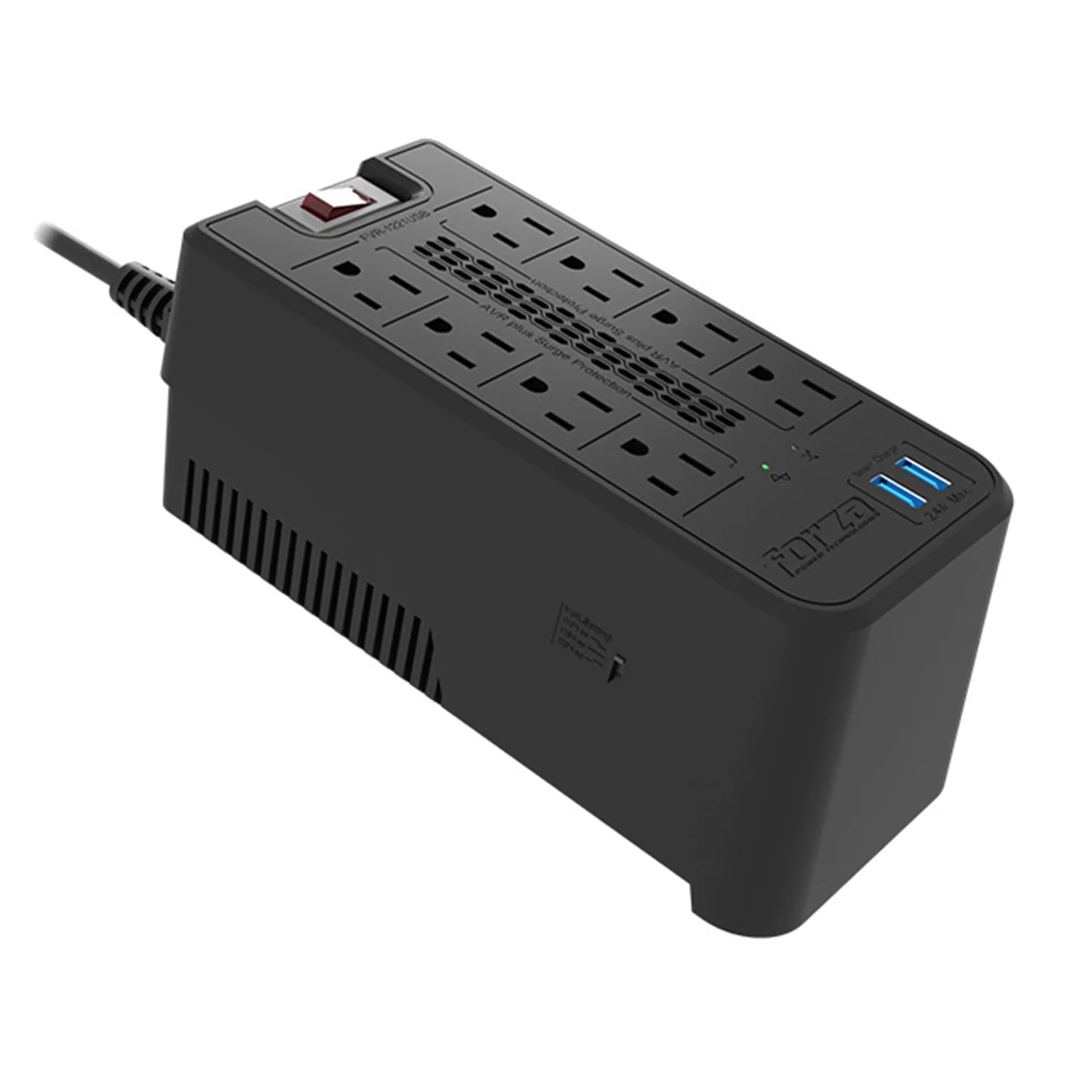 - **Entradas y Salidas**: Cuenta con 8 salidas de 110V y 2 puertos USB, facilitando la conexión de múltiples dispositivos a la vez.