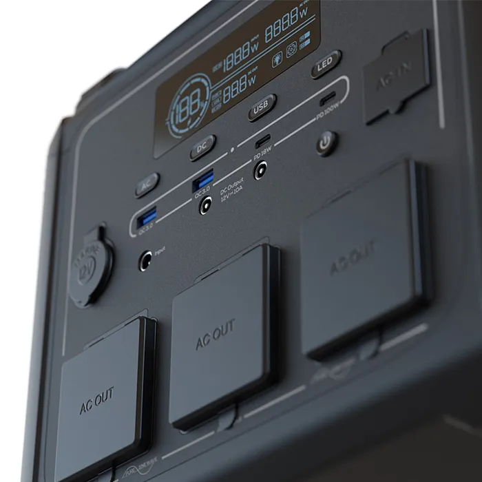 El generador cuenta con múltiples salidas: 3 tomas de corriente alterna (AC) de 110V/120V y 8 salidas de corriente continua (DC), lo que lo convierte en una opción versátil para alimentar herramientas eléctricas, electrodomésticos, iluminación y dispositivos electrónicos. Además, incorpora un panel de control intuitivo que permite un fácil monitoreo de la energía disponible y el estado del generador.