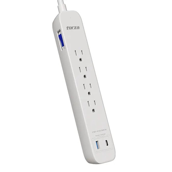 El protector de voltaje FSP-451USBCW de Forza es una solución avanzada diseñada para proteger dispositivos electrónicos y electrodomésticos de sobrecargas, picos y fluctuaciones de voltaje. Con una capacidad de 1750W y diseñado para voltajes de 110 / 120V, este dispositivo es ideal para uso en entornos residenciales y comerciales.