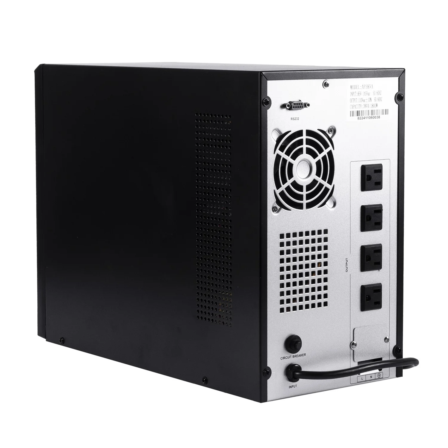 - **Panel LCD**: Incluye un panel de control LCD que proporciona información en tiempo real sobre el estado del UPS, incluyendo voltaje de entrada, voltaje de salida, carga de batería y tiempo de funcionamiento restante.