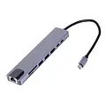 1. **Ocho Puertos en Uno**: Ofrece múltiples opciones de conexión, incluyendo un puerto RJ45 para conexión a redes Ethernet, un lector para tarjetas TF/SD, un puerto HDMI (HDTV) para salida de video, dos puertos USB 3.0 para transferencia de datos, un puerto USB Tipo C y un puerto de carga Power Delivery (PD) para alimentación de dispositivos.