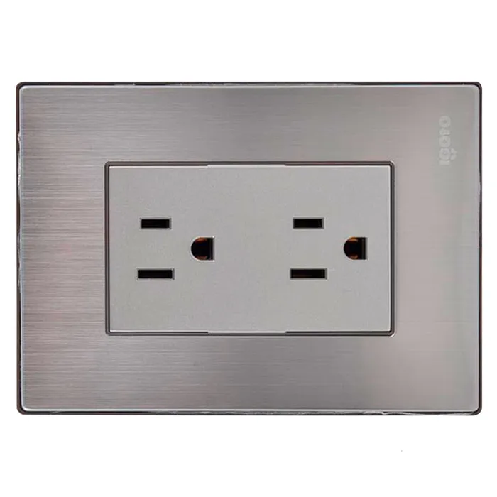 La toma corriente doble con tierra serie Inox [I105/2] Igoto combina seguridad, funcionalidad y estilo, convirtiéndola en la opción ideal para instaladores que buscan un producto de alta calidad y rendimiento en sus proyectos eléctricos