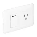 El C316-W está diseñado para integrarse de manera armoniosa en cualquier ambiente gracias a su acabado en color blanco, que se adapta a diversas paletas de decoración. Este producto incluye un interruptor simple y una toma corriente, permitiendo el control de la iluminación y el suministro eléctrico de dispositivos electrónicos en un solo módulo.