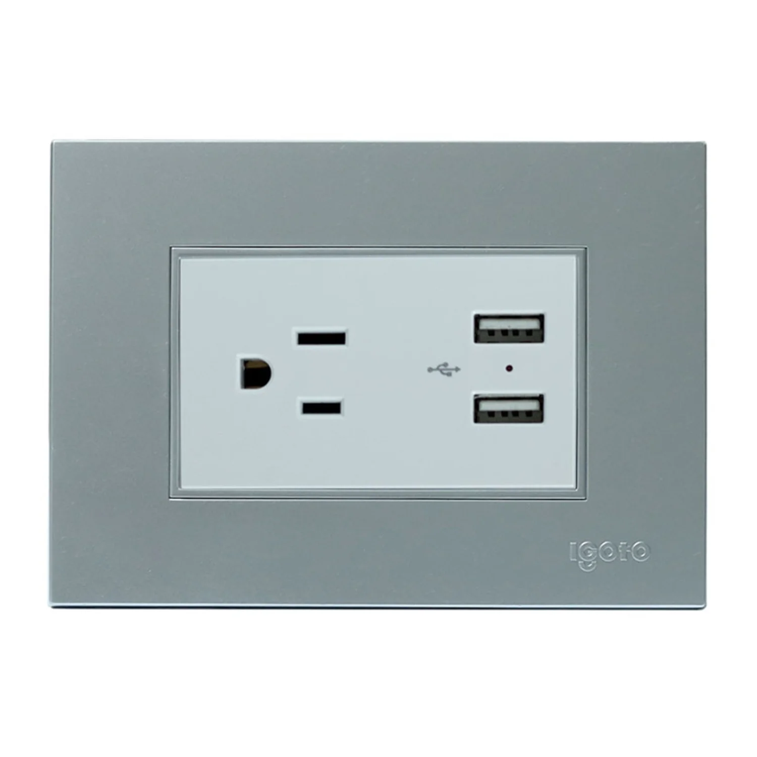[Z105U-S] Igoto - Toma Corriente con Tierra + 2 USB Serie Z [Plata]