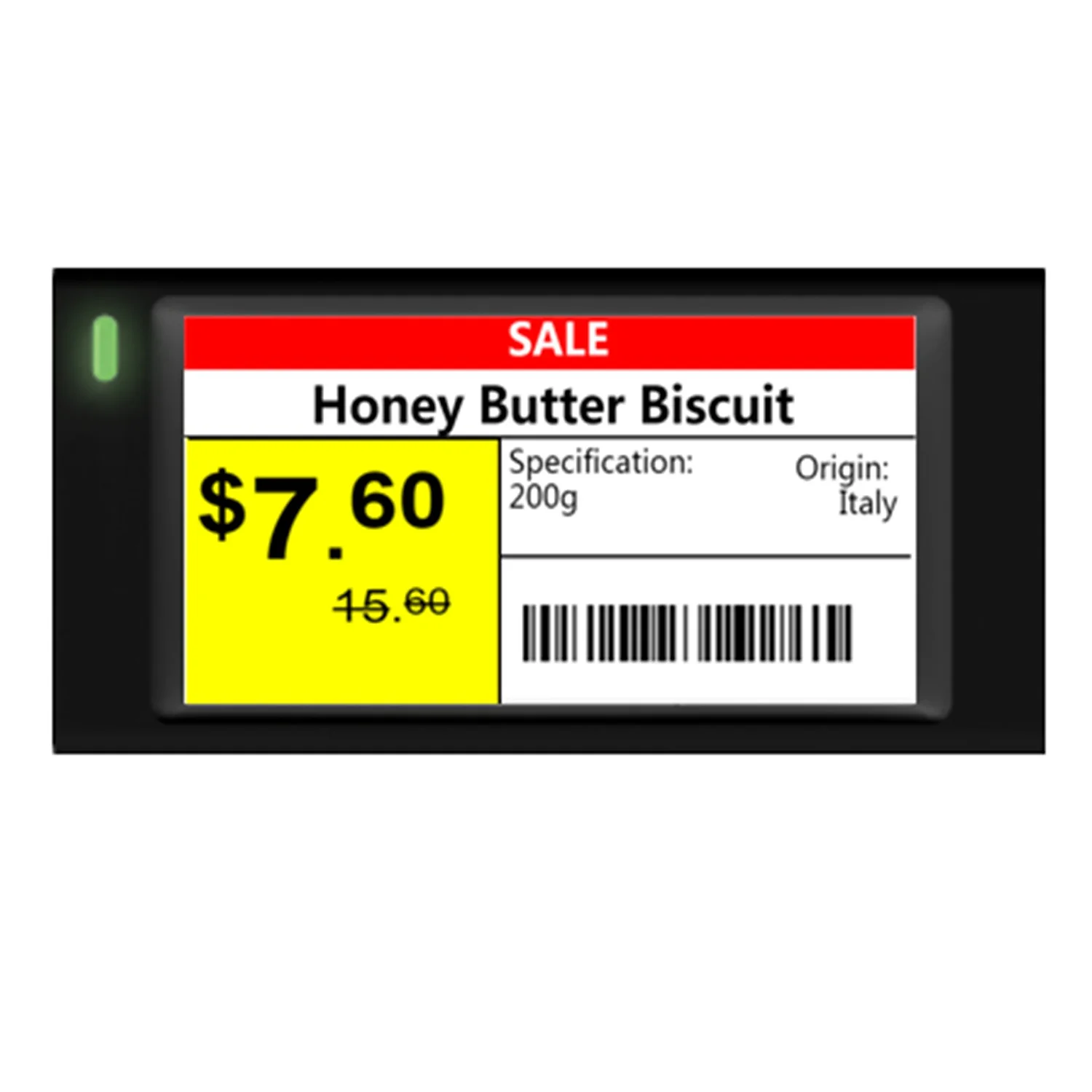 La etiqueta ESL [A] cuenta con una pantalla de 2.6 pulgadas que ofrece una resolución clara y nítida, disponible en múltiples colores: blanco, negro, rojo y amarillo. Esto permite a los minoristas personalizar la presentación de los precios y promociones, atrayendo así la atención del cliente de manera efectiva. La conectividad NFC facilita la comunicación con dispositivos móviles, brindando la posibilidad de realizar cambios de manera rápida y sencilla. Su carcasa negra robusta no solo protege el interior del dispositivo, sino que también se integra fácilmente en diversas estéticas de tienda.