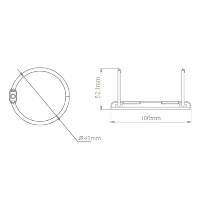 El DHI-ESL-BH03 presenta dimensiones compactas de 100 mm x 48 mm x 52.1 mm, lo que lo hace ideal para instalaciones en espacios reducidos. Su diseño incluye un diámetro interior del anillo de 42 mm, lo que permite una adaptación precisa a los dispositivos ESL compatibles. Fabricado en plástico ABS y acero inoxidable SUS304, este soporte asegura una excelente resistencia a la corrosión y el desgaste, lo que es esencial para aplicaciones tanto interiores como exteriores.