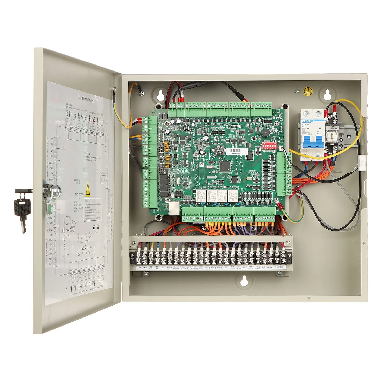 - **Gestión de Puertas**: Capacidad para controlar hasta cuatro puertas, lo que permite una gestión eficiente de entradas y salidas.