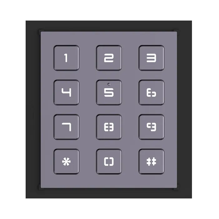 El módulo de teclado DS-KD-KP de Hikvision es un dispositivo avanzado diseñado específicamente para sistemas de video portero, permitiendo la apertura de puertas mediante código. Este módulo es ideal para entornos residenciales y comerciales, donde la seguridad y el control de acceso son primordiales. Con un diseño robusto y funcional, el DS-KD-KP se integra fácilmente en la infraestructura existente, ofreciendo una solución efectiva y confiable para la gestión de entradas.