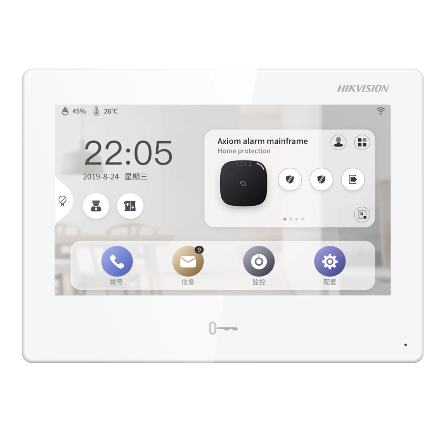 El monitor touch IP Hikvision DS-KH9310-WTE1 es un dispositivo versátil diseñado para la supervisión y el control de sistemas de seguridad en entornos residenciales y comerciales. Con su pantalla táctil de 7 pulgadas, este monitor ofrece una interfaz intuitiva que facilita la interacción del usuario con las funciones del sistema de vigilancia. Su diseño moderno y compacto permite una integración sencilla en diversos espacios.