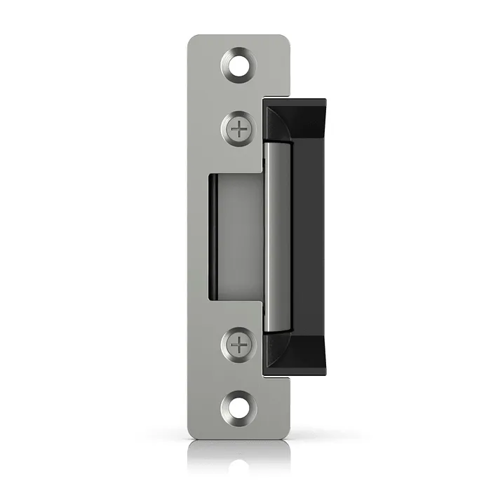 La cerradura eléctrica Ubiquiti UA-Lock-Electric está diseñada para integrarse de manera óptima con el sistema UniFi Access Hub, ofreciendo una solución de seguridad avanzada para entornos comerciales y residenciales. Este dispositivo, concebido para proporcionar un alto nivel de seguridad, es capaz de soportar una fuerza de hasta 1200 kg, lo que la convierte en una opción robusta para proteger accesos críticos.