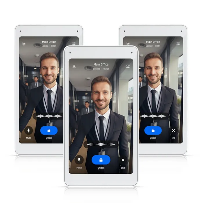 El monitor Ubiquiti UniFi Intercom Viewer es una solución avanzada para la gestión y visualización de sistemas de intercomunicación, diseñado específicamente para vincularse con el UA-Intercom. Este dispositivo permite a los usuarios supervisar y comunicarse eficazmente, ofreciendo una integración perfecta con la arquitectura del sistema UniFi de Ubiquiti. En este paquete, se incluyen tres monitores, facilitando la instalación en múltiples puntos de acceso dentro de una propiedad.
