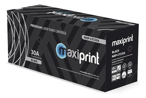 El tóner Maxiprint ha sido fabricado respetando normativas medioambientales, utilizando materiales reciclables y procesos que minimizan el impacto ambiental, proporcionando una alternativa ecológica para usuarios conscientes de la sostenibilidad.