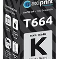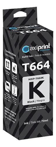 La tinta negra Maxiprint T664K es compatible con una amplia gama de impresoras Epson que utilizan cartuchos o sistemas de tinta continua basados en el modelo T664. Entre las impresoras compatibles se incluyen, pero no se limitan a: