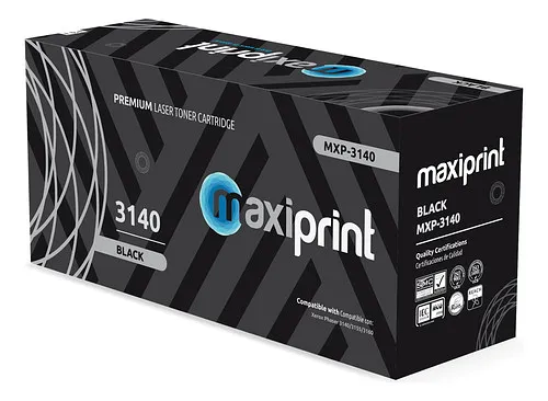 El tóner compatible Maxiprint para Xerox Negro 3140 es una solución de alta calidad diseñada para ofrecer un rendimiento óptimo en impresoras multifuncionales y láser específicas de la marca Xerox. Este consumible se ha desarrollado bajo estrictos controles de calidad para asegurar una impresión nítida, uniforme y con una densidad de color sobresaliente, ideal para entornos profesionales donde la presentación y la fiabilidad son prioritarias.