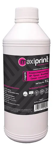 La tinta universal Maxiprint 1lt Magenta UI1LM es una solución de alta calidad diseñada para satisfacer las necesidades de impresión tanto en entornos profesionales como en aplicaciones domésticas o comerciales. Gracias a su formulación avanzada, esta tinta ofrece un rendimiento óptimo en diversas impresoras de inyección, garantizando resultados vibrantes, duraderos y con una excelente definición de color. Su presentación en envase de 1 litro permite un uso prolongado y económico, ideal para usuarios que requieren grandes volúmenes de impresión sin comprometer la calidad.