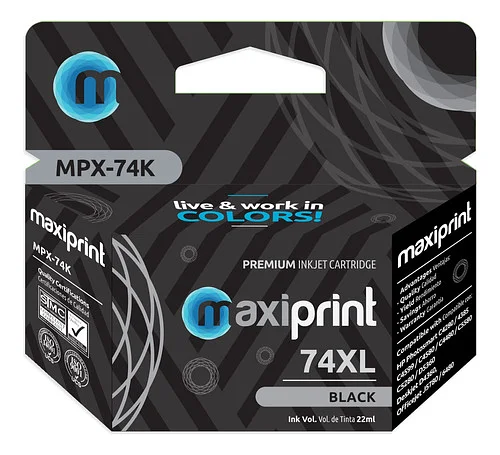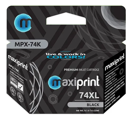 Esta amplia compatibilidad asegura que el cartucho Maxiprint 74XL pueda ser utilizado eficazmente en múltiples dispositivos, facilitando la compra y el uso para quienes operan con diferentes modelos de impresoras.