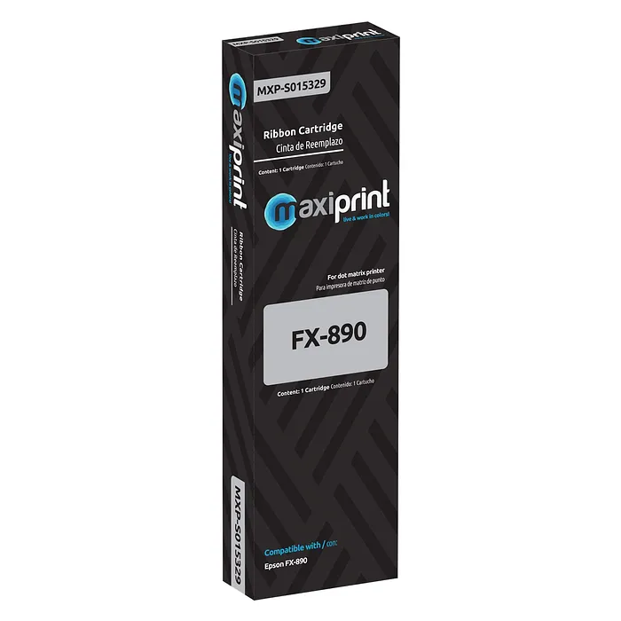 La cinta compatible Maxiprint para Epson FX890/S015329 es una opción técnica y profesional diseñada para ofrecer impresiones de alta calidad y durabilidad en impresoras matriciales Epson. Su compatibilidad exacta, materiales de alta resistencia y tinta de