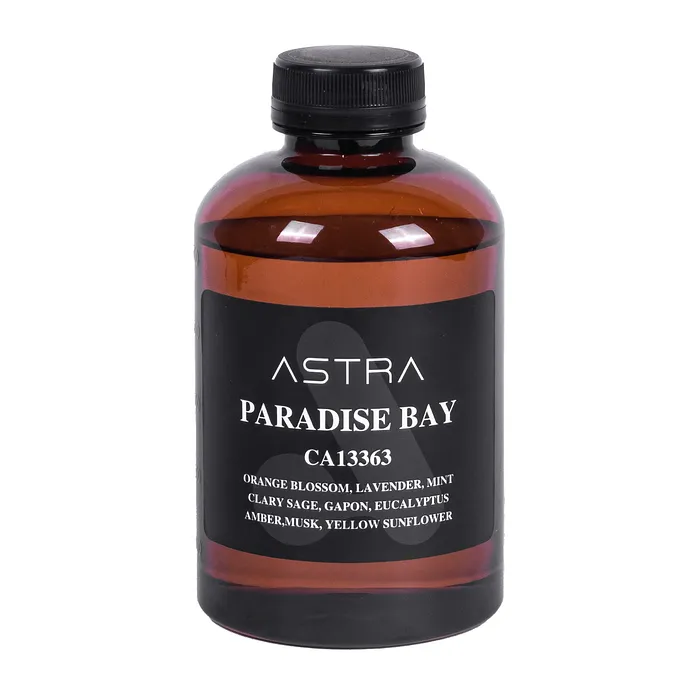 El Aceite Esencial Paradise Bay de Astra es un producto de alta calidad, diseñado específicamente para brindar una experiencia sensorial única. Presentado en un envase de 500 ml, este aceite esencial es ideal para diversas aplicaciones, tanto en el ámbito terapéutico como en el cotidiano.